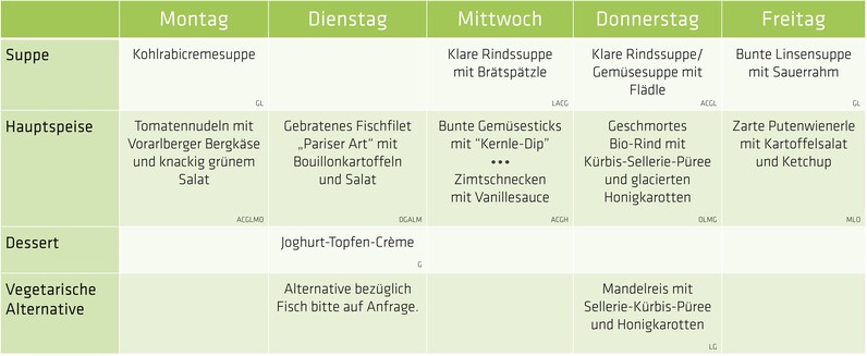 Allergeninformation gemäß Codex-Empfehlung - LEGENDE